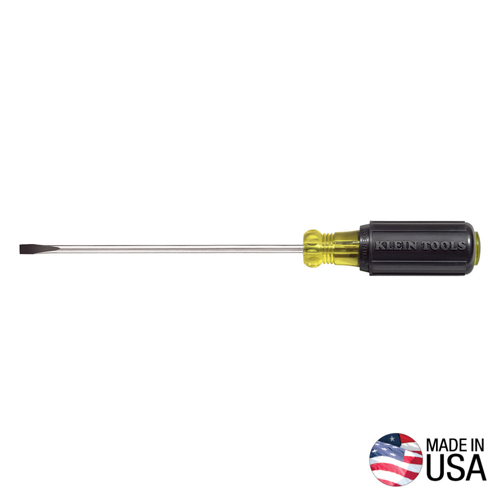 Klein's 3/16-Inch Cabinet Tip Screwdriver is designed with a narrow cabinet tip that allows for easy access in tight spaces. This screwdriver features a Cushion-Grip handle for added comfort and torque, making it ideal for all-day work. The Tip-Ident® feature quickly identifies the screwdriver type and tip orientation, while the 6-inch heat-treated shaft ensures durability and strength.
