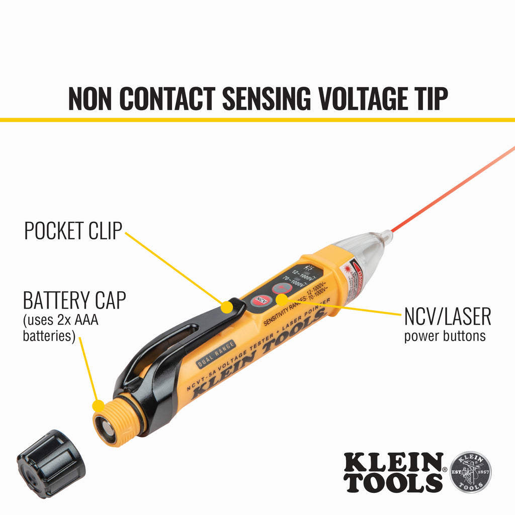 The Klein Tools NCVT-5A is the definitive solution for those who require both precision and reliability while working on electrical systems. With its dual voltage detection capabilities, integrated laser pointer, and user-friendly design, it ensures that you can work with confidence—knowing that you're well equipped to handle a variety of tasks. The audible alerts increase in frequency as you get closer to the voltage source, which significantly enhances safety during testing. Add this indispensable tool to your toolkit and experience the difference in performance and peace of mind.